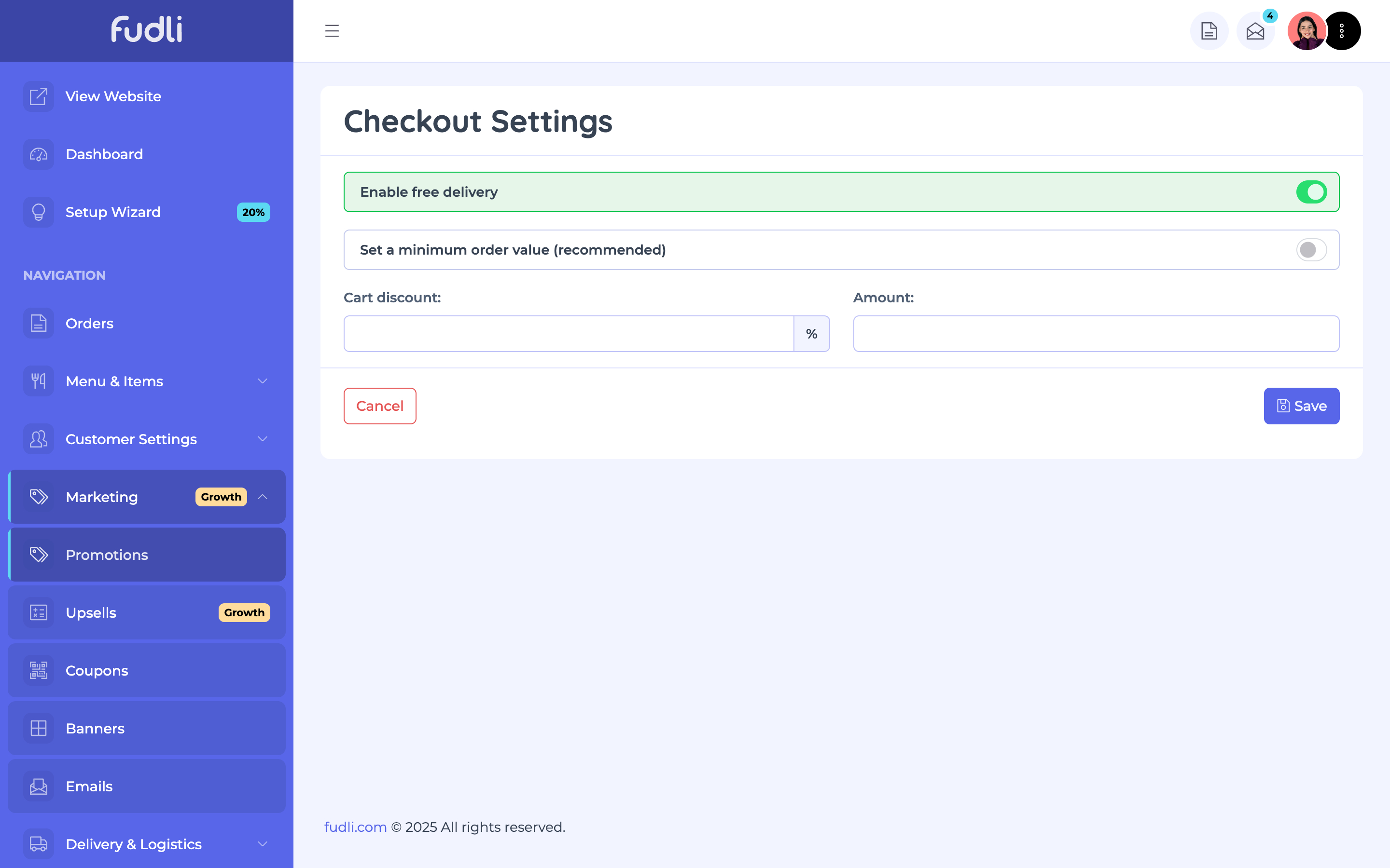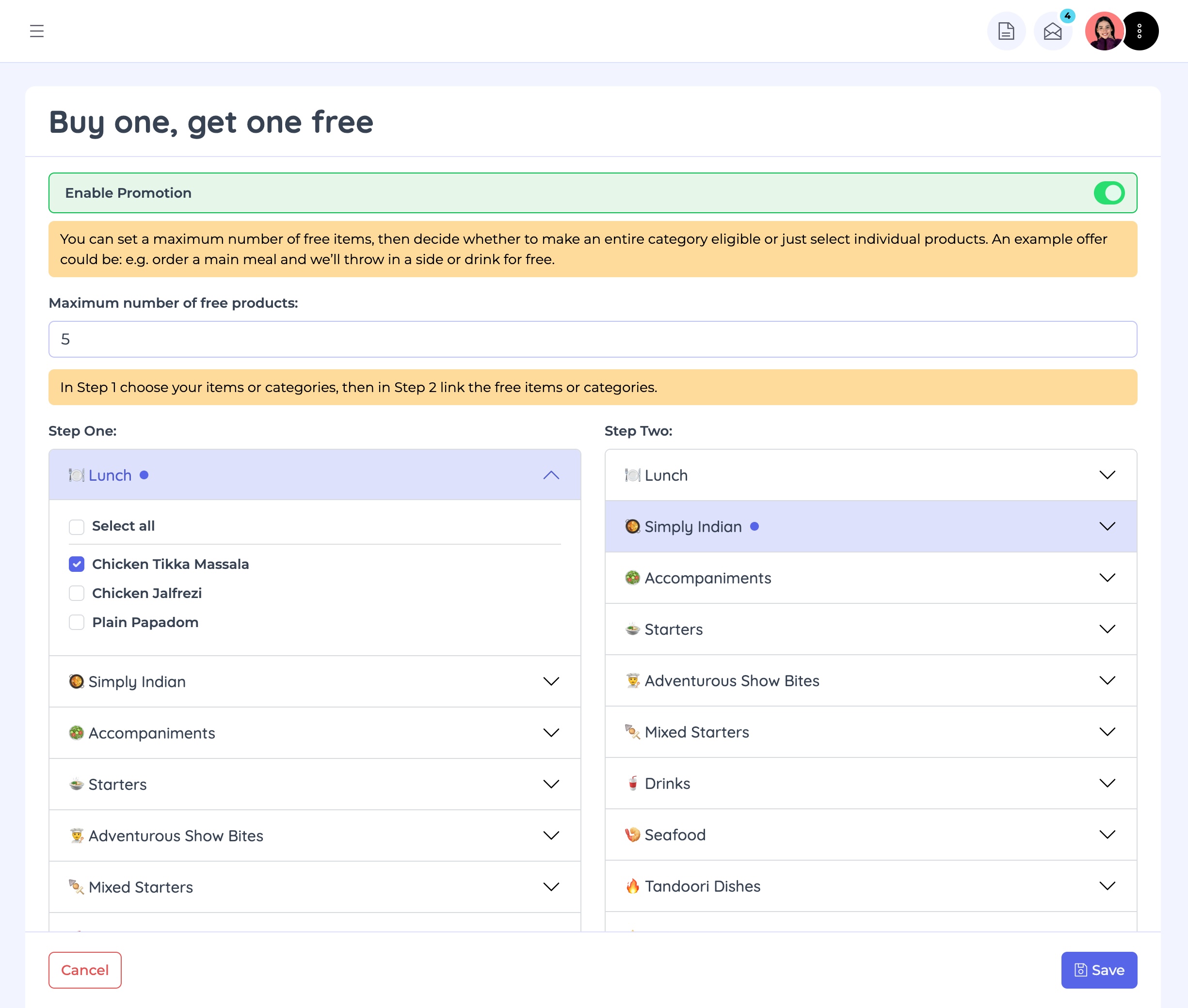 Promotions allow you to create special offers that encourage customers to place more orders and spend more on your Online Ordering System.