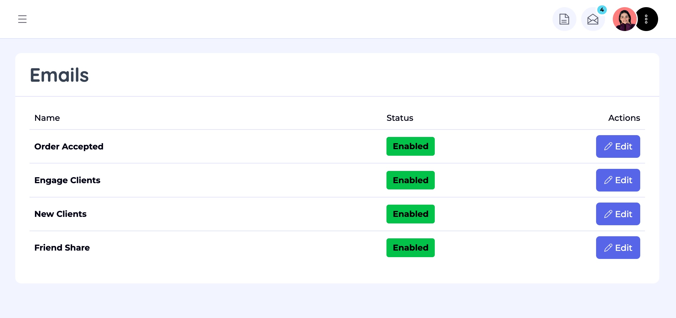 - Order Accepted – Sent when a customer places a new order to confirm it’s been received.