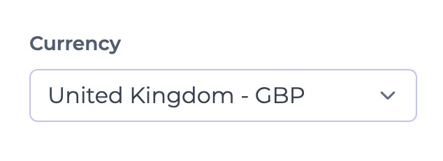 You can define the currency that will be displayed across your website. All product prices, fees, and invoices will be shown in this currency.