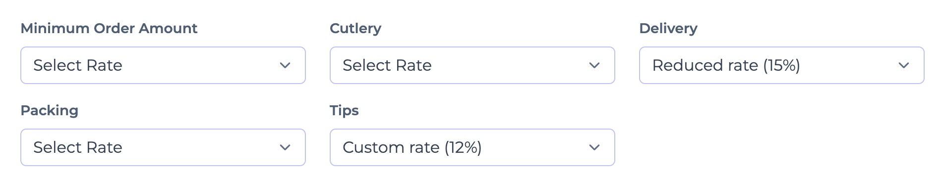 - Packaging Fees – Tax applied to takeaway packaging costs.