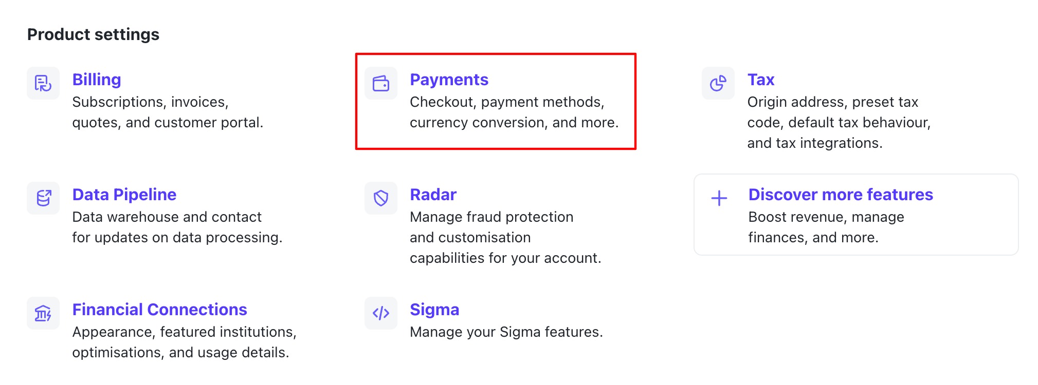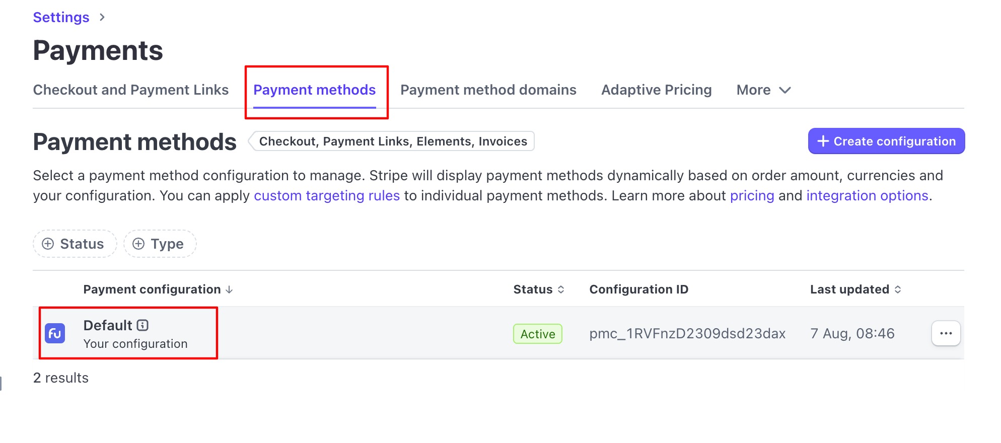 On the Settings page, click Payments. Select the Payment Methods tab.