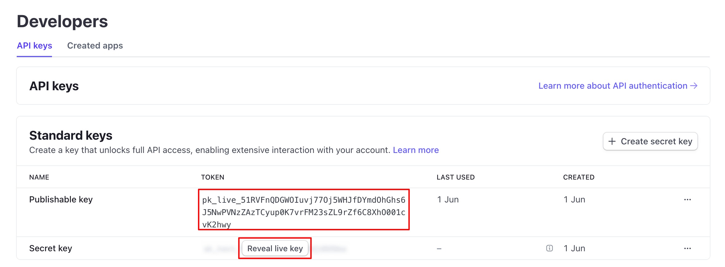 - Go to Developers > API keys or visit API Keys page