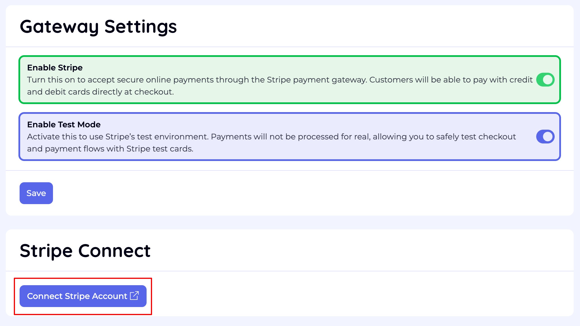Once your Stripe account is connected: