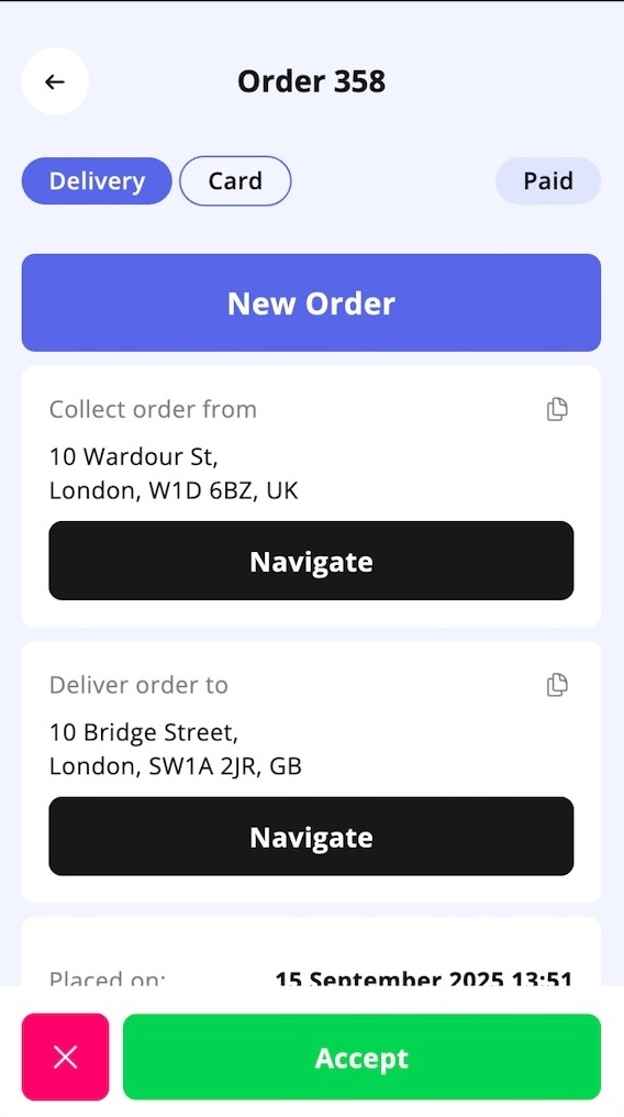 ✅ Plan your route – Use the in-app navigation to avoid backtracking between venues. Group deliveries smartly if two locations are close together.