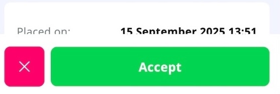 - If you cannot fulfill an order, tap the Red X (Decline) button.
