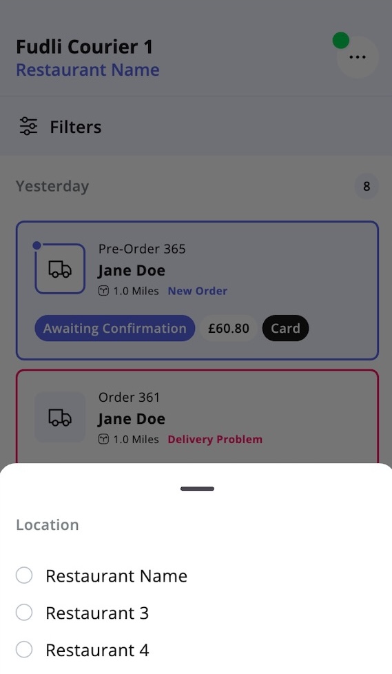 If you’ve been assigned by multiple merchants (for example, a restaurant chain or a group of venues), you can manage all deliveries using the same Courier App.