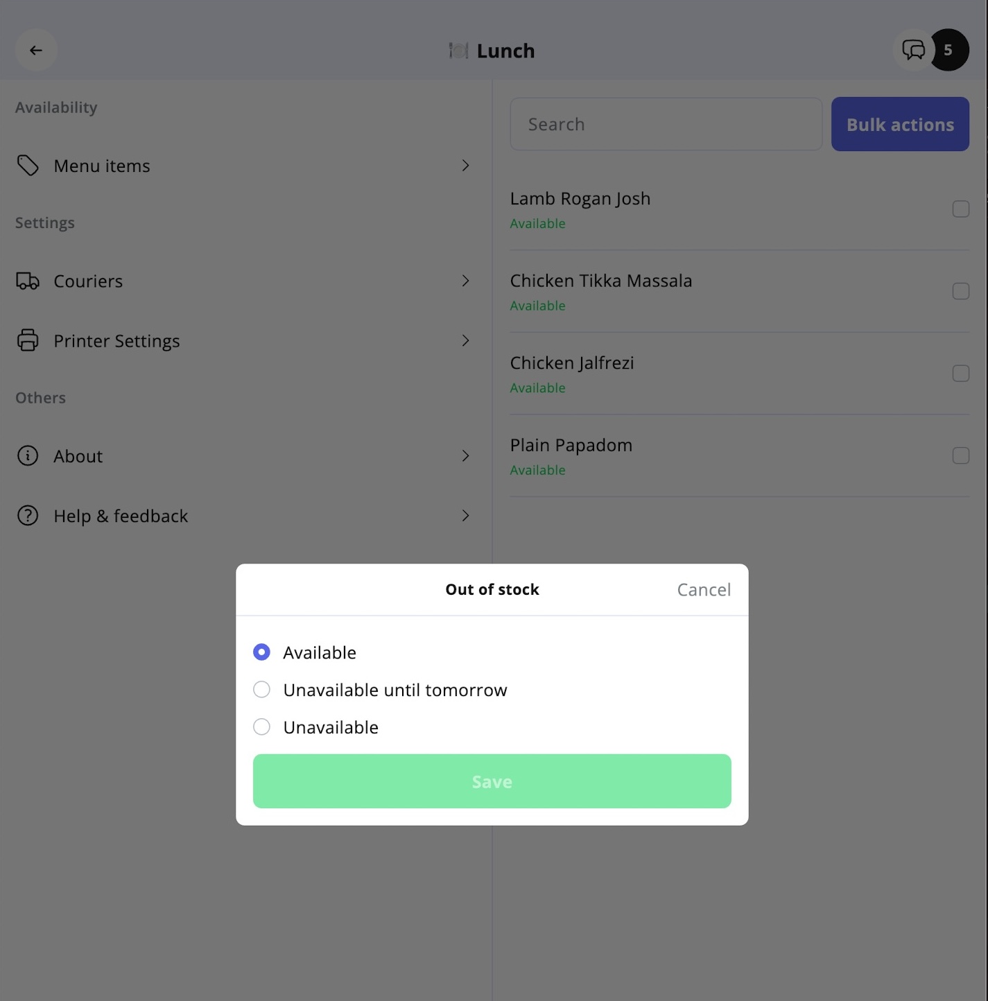 ✅ Use bulk actions for efficiency – Save time when multiple items are unavailable at once (e.g., supply issue).