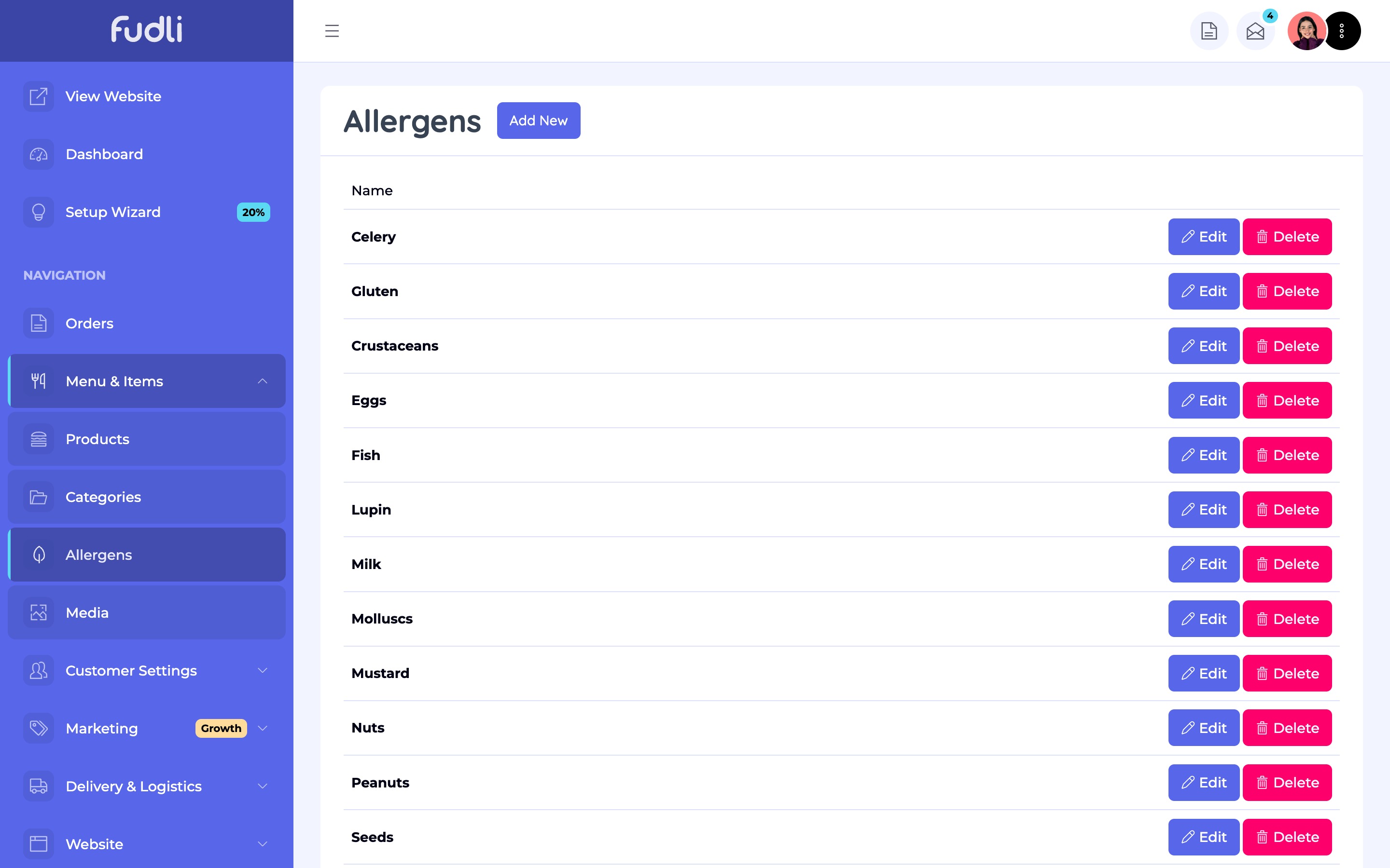 - Add new allergens or edit existing ones.