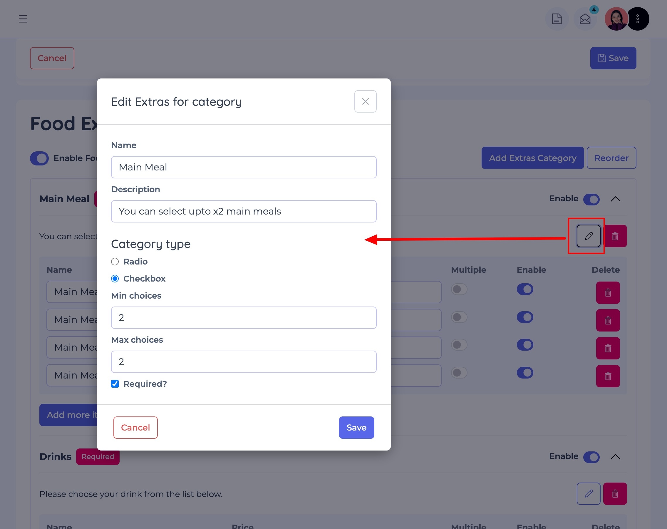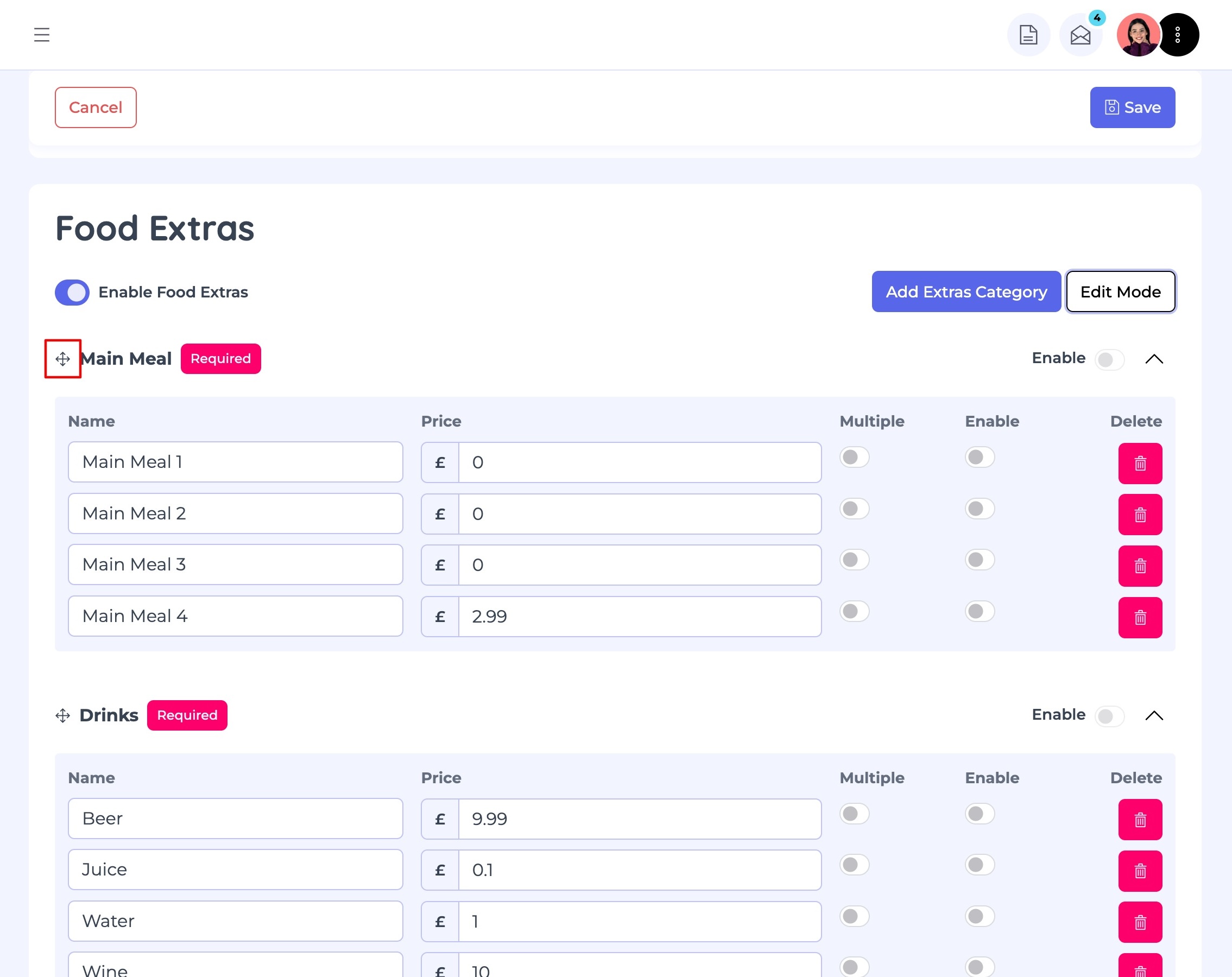 This feature allows you to offer variations and add-ons for your products. It’s especially useful for items like pizzas, burritos, or meal deals where customers may want to customise their order.